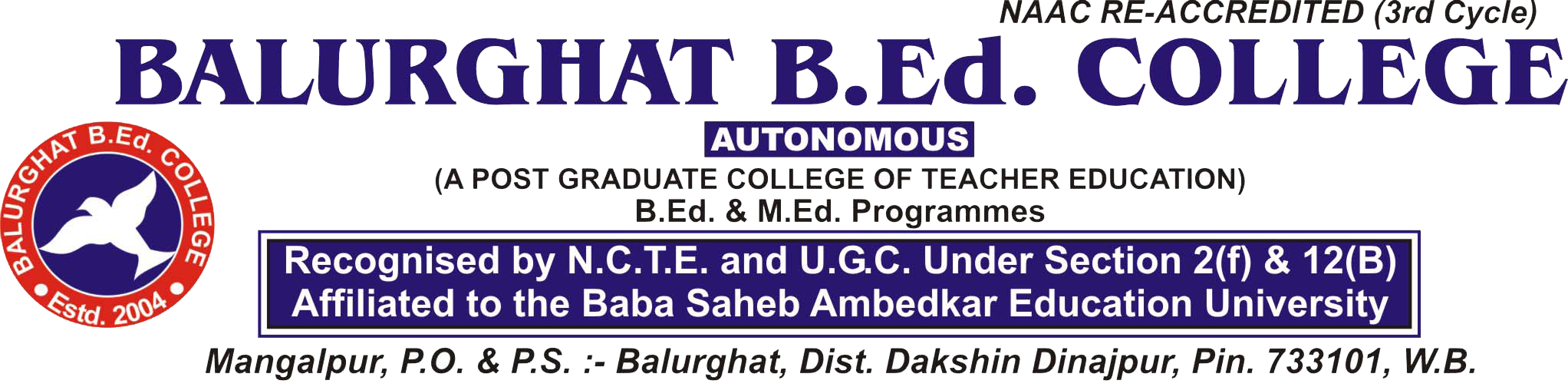 Balurghat B.Ed. College is situated in the district town of Dakshin Dinajpur which is a border district and backward region of West Bengal. The area is agro dominated and rural, where economic activity varies with the variation of agricultural production. The reminiscence unfolds the historical facts that the Independence of India, formation of East Pakistan and hence the partition of Bengal caused exodus of huge Hindu population from the then East Pakistan to India. Notwithstanding the loss of valuable property, profitable business and profession, the Hindus left the then East Pakistan and entered India to get settlement. Balurghat being a border town, the growth rate of population rose from five thousand to 50 thousand in the year of Independence.